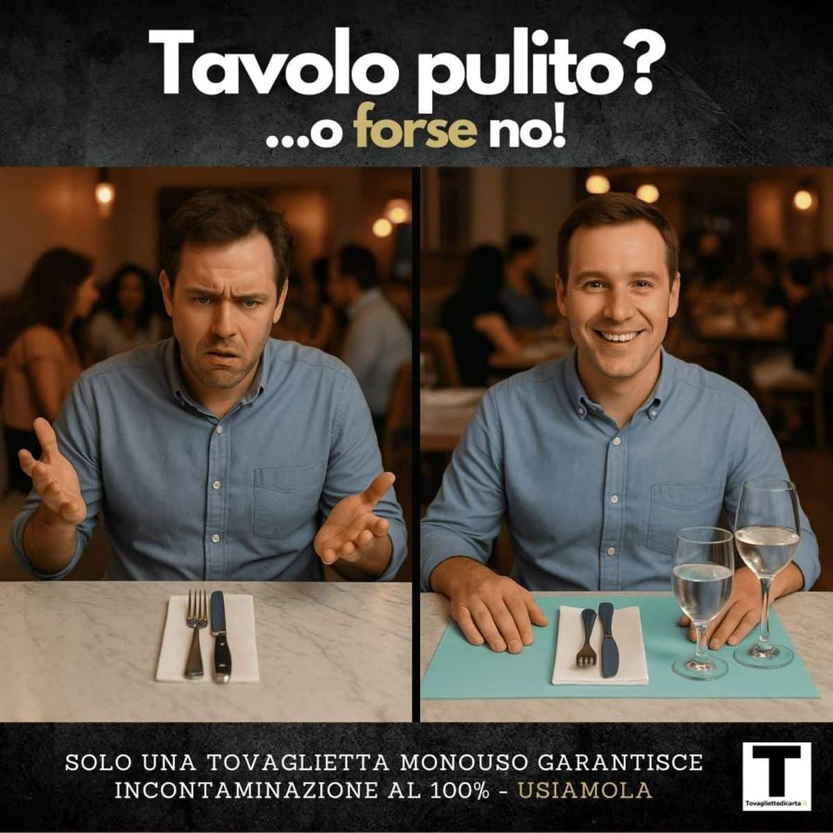 C'è un istante che precede tutto il resto. Viene prima del menu, prima del sorriso del cameriere, prima del profumo che arriva dalla cucina. È il momento in cui ti siedi e i tuoi occhi scansionano la tavola. Una macchia ambigua sulla tovaglia, un alone sul piano nudo, un bordo ingiallito. Il cervello registra questi segnali in pochi secondi e costruisce un giudizio che difficilmente cambierà durante il pasto. Chi sceglie dove mangiare fuori presta attenzione alla pulizia della tavola quanto alla qualità del piatto, e questo vale ancora di più oggi, con le recensioni online pronte a immortalare ogni scivolone. L'igiene nella ristorazione non riguarda solo la cucina e la catena del freddo. Si gioca anche sulla superficie che sta tra te e il piatto, ed è proprio qui che le tovagliette monouso stanno cambiando le regole del gioco.